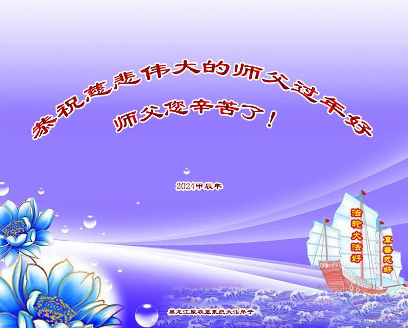 师尊过年好!多谢师尊慈悲救度!弟子跟上正法進程,随师尊法正人间。弟子拜谢恩师! 穹宇转法轮 师尊正乾坤 诚念真善忍 光耀天地春 黑龙江省电力系统大法弟子、国家电网公司全体大法弟子恭祝慈悲伟大的师尊新年好!