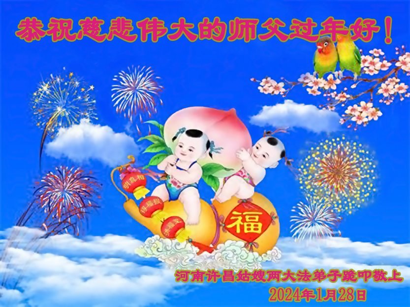 恭祝慈悲伟大的师父过年好! 感谢师父的慈悲救度之恩! 师父您辛苦了! 河南许昌姑嫂俩大法弟子跪拜敬上 2024年1月28日 河南省洛阳大法弟子恭祝师父过年好!