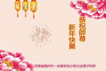 在龙年新年到来之际,我们学法小组大法弟子叩拜师尊,恭祝师尊新年快乐!在新的一年里,我们要多学法,精進实修,做好三件事,圆满随师还。 禹州市某乡大法弟子叩拜 河南大法弟子恭祝师尊过年好!