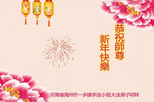 新年将至,弟子怀着无比感恩的心,向慈悲伟大的师尊问好!弟子盼师尊早日回大陆。 师恩难报,弟子只有多学法、学好法,正念正行多救人,坚定的信师信法,助师正法,兑现史前洪愿,以报师恩! 河南省南阳市唐河县大法弟子恭祝师父新年好!