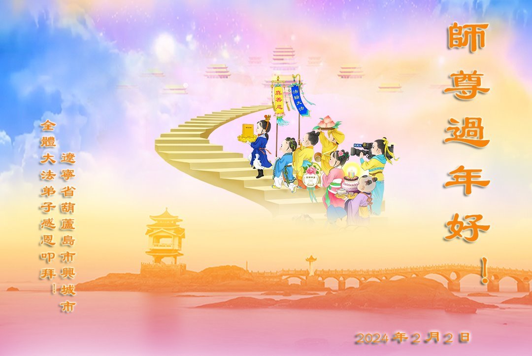 【明慧网二零二四年二月八日】 辽宁省葫芦岛市兴城市大法弟子恭祝慈悲伟大的师尊过年好!