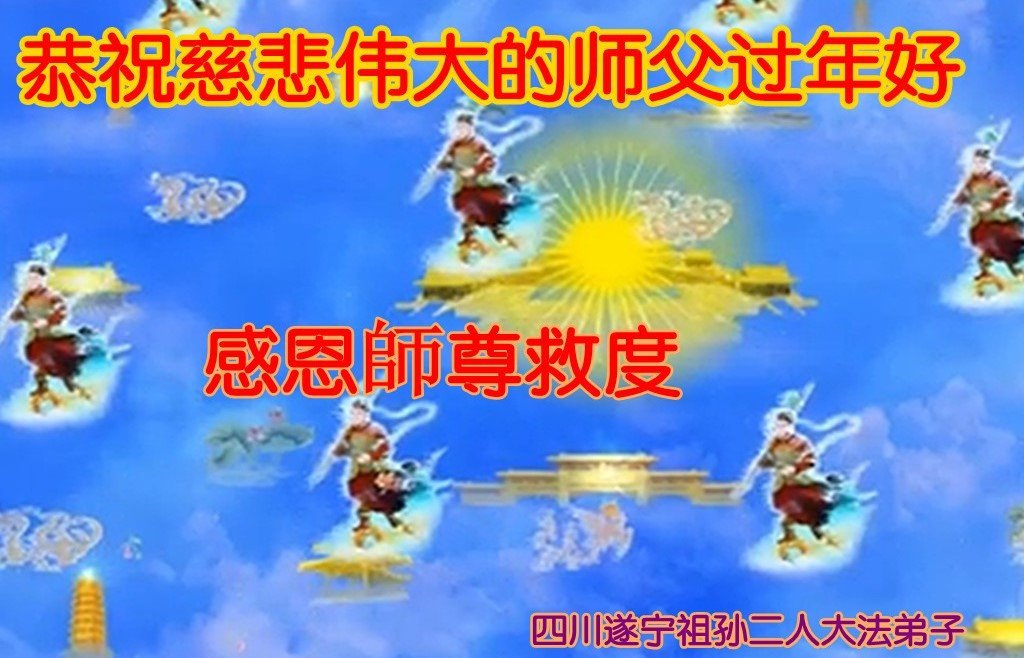 四川遂宁大法弟子恭祝慈悲伟大的师父过年好!