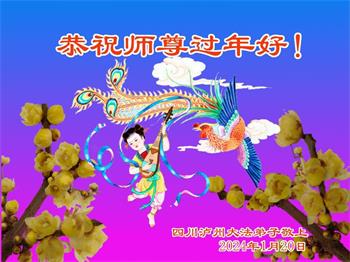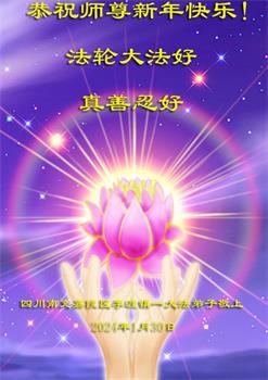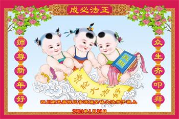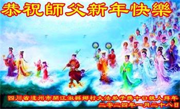 【明慧网二零二四年二月八日】 四川遂宁一学法小组大法弟子恭祝慈悲伟大的师父过年好!