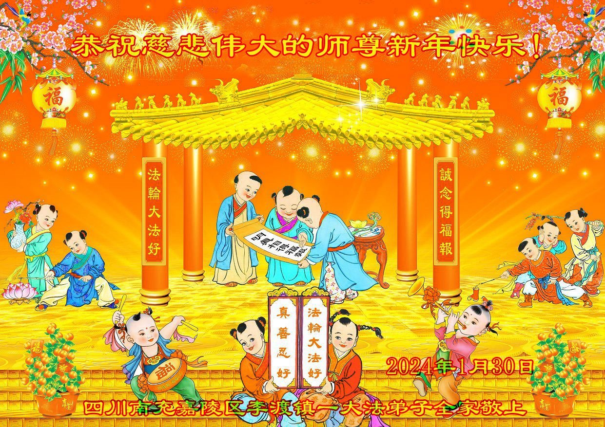 法轮大法好!真善忍好! 四川南充嘉陵区李渡镇一大法弟子敬上 2024年1月30日 四川南充嘉陵区李渡镇一大法弟子全家恭祝慈悲伟大的师尊新年快乐!