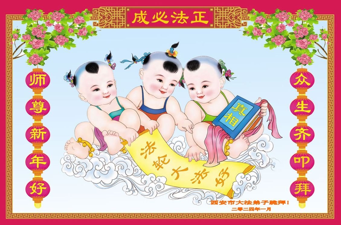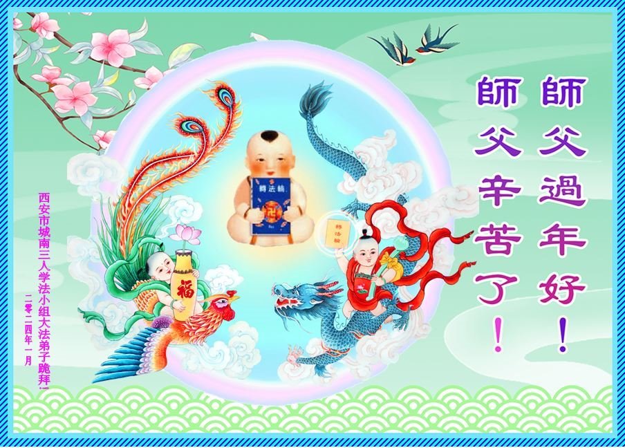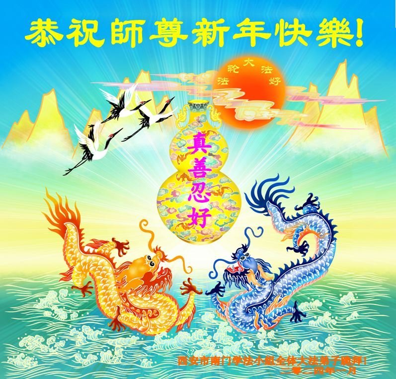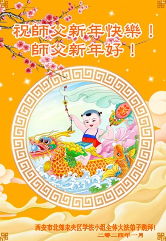 【明慧网二零二四年二月八日】 陕西省西安市西郊一学法小组大法弟子恭祝师父新年快乐!