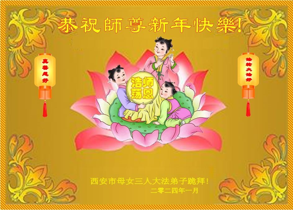 师父新年好! 陕西省西安市西郊大法弟子携全家人恭祝师父新年快乐!