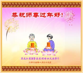 黑龙江省双鸭山市集贤县农村母女大法弟子恭祝师尊过年好!