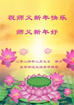 恭祝师尊新年快乐!过年好! 北京一大法弟子敬上 二零二四年一月二十三日 北京海淀、西城及朝阳地区大法弟子恭祝师父过年好!