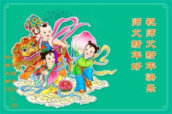 恭祝师父新年快乐! 一年一度的新年佳节即将来临,几名大法弟子向伟大慈悲的师父拜年了,师父,新年快乐!三叩首 学习师尊的两篇经文《为什么会有人类》和《为什么要救众生》深感震撼,师尊揭示了许多天机警醒了世人,为世人明白真相得到大法的救度,奠定了坚实基础,师父对众生的慈悲和洪恩浩荡,也激励着大法弟子在未后的末后,精進前行。修好自己。 请师父放心弟子只有修好自己多学法学好法,用好法放下人心、人念做好三件事,多救人,完成自己的历史使命,兑现誓约,圆满回家。 待法正人间 普天同庆 乘法船悠悠 随师回天踏金莲 黑龙江省哈尔滨市南岗区大法弟子及两个孙子敬祝师父过年好!