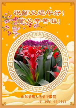 山东省东营地区大法弟子恭祝师尊新年好! 山东莱芜大法弟子恭祝伟大的师父过年好!