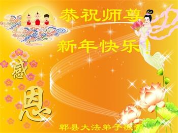 感恩师父慈悲救度! 成都市金堂县一学法小组大法弟子敬上 四川省成都市金堂县一老大法弟子恭祝师父新年快乐!