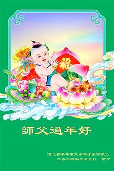 石家庄市新华区一学法小组大法弟子敬上 二零二四年二月九日 除夕 河北石家庄市长安区南村镇一大法弟子恭祝师尊中国新年快乐!