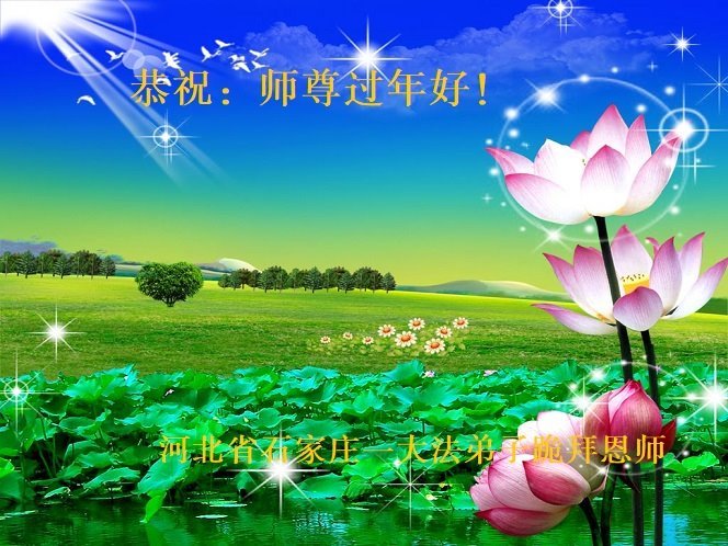 感恩师尊慈悲救度! 石家庄市一大法弟子及明真相家人敬上 河北省石家庄一大法弟子敬祝师父过年好!
