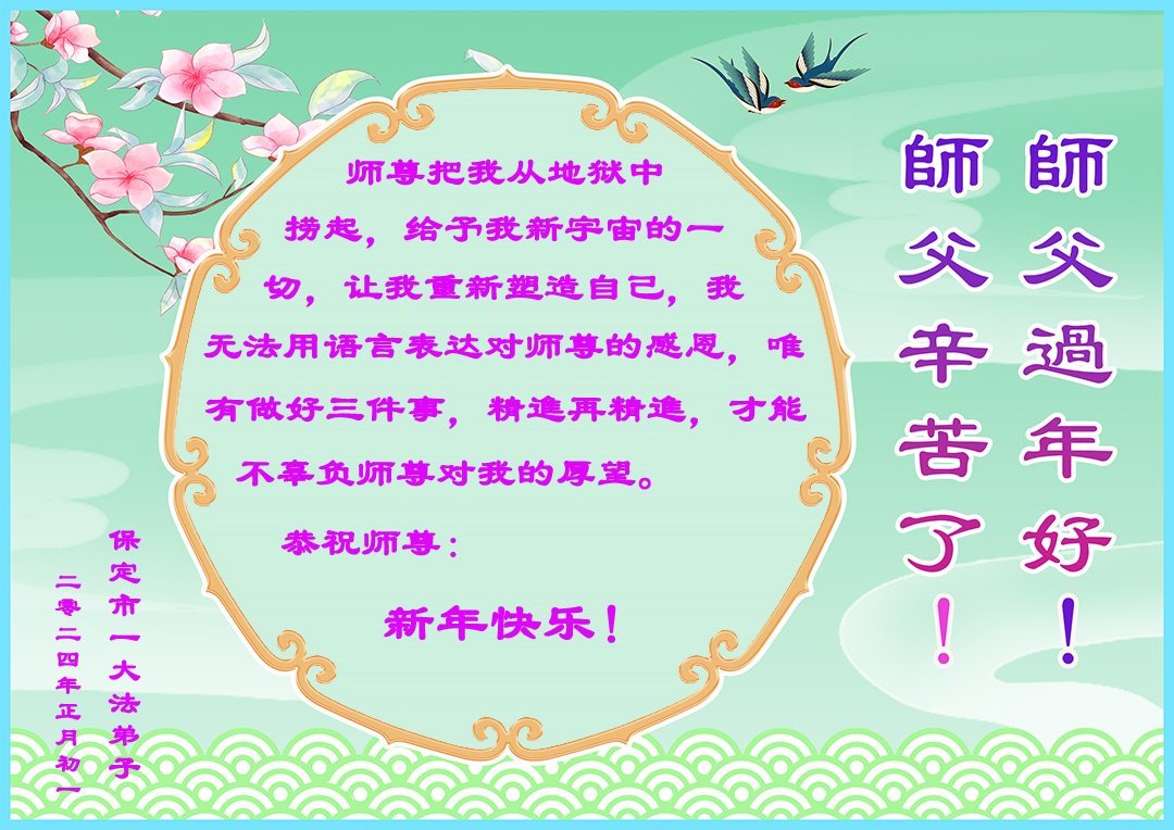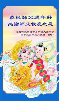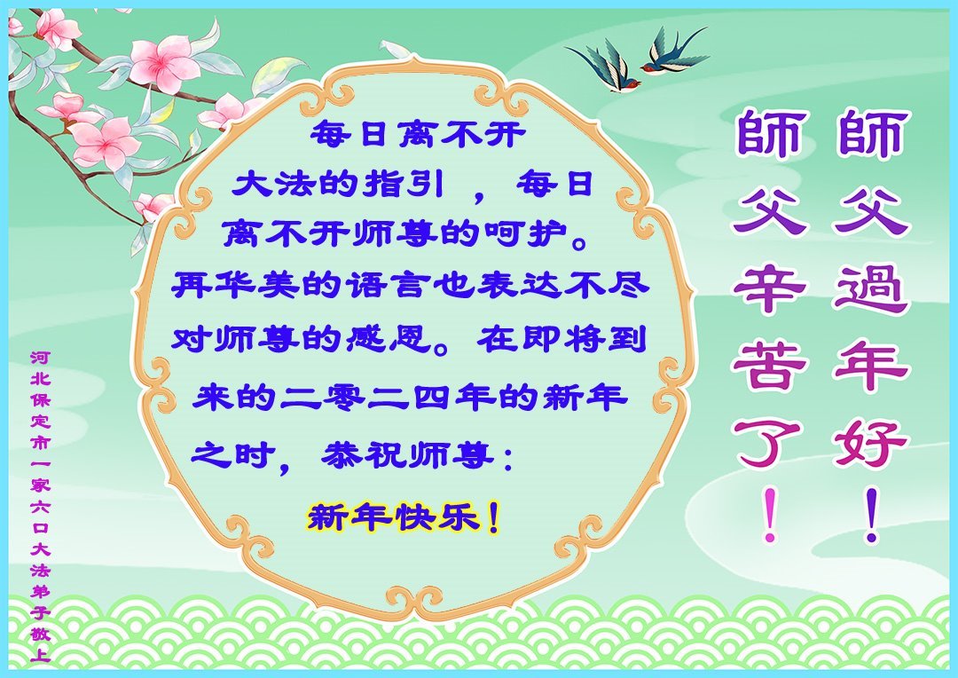 【明慧网二零二四年二月九日】 河北省保定市一家六口大法弟子恭祝伟大的师尊新年快乐!