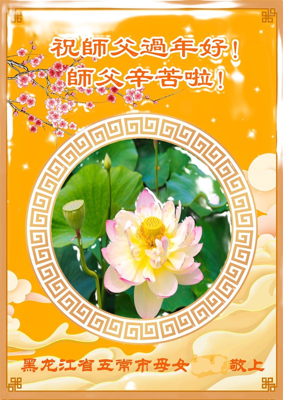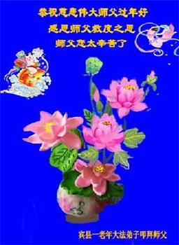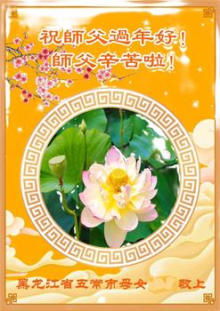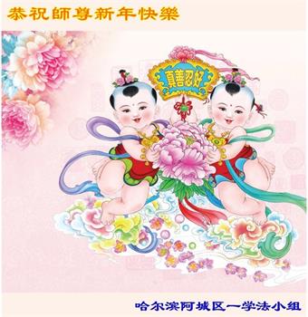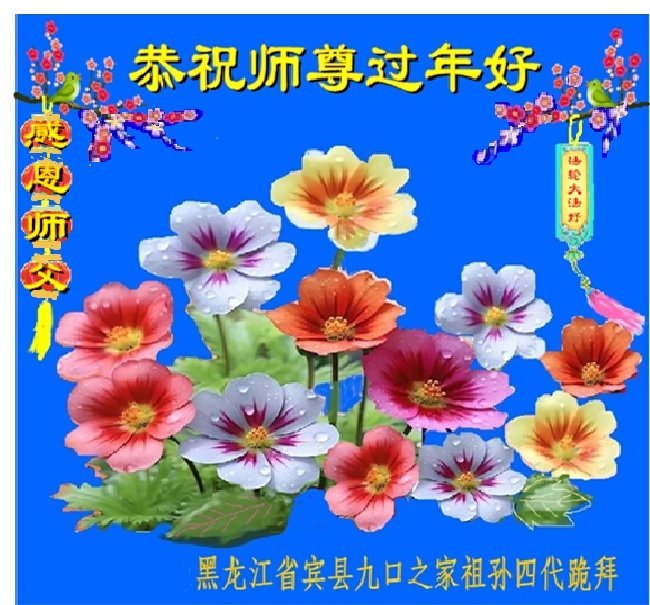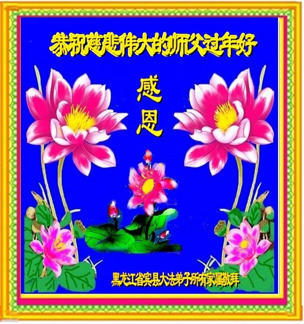恭祝师尊过年好! 我们全体大法弟子一定学好法,修好自己,救度更多的众生,跟师父圆满回家。 黑龙江省哈尔滨市宾县学法小组大法弟子恭祝慈悲伟大师父过年好!