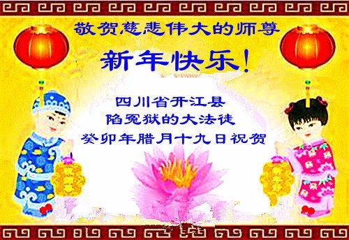 法轮大法好!真善忍好! 德阳广汉市一家四代六名大法弟子敬上 四川省内江市威远县一大法弟子恭祝师父过年好!