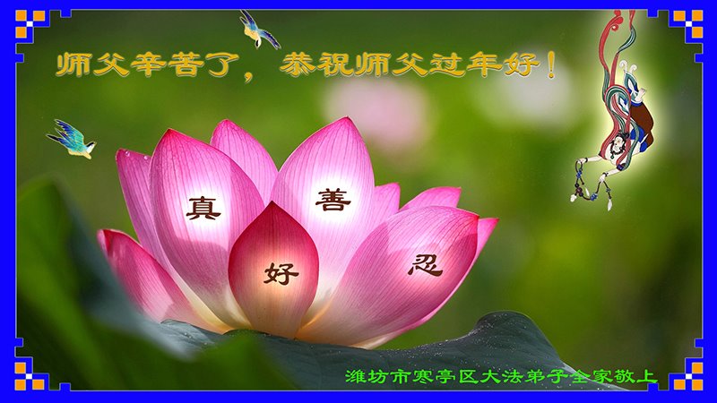 我们深感师父的佛恩浩荡!感谢师父的慈悲苦度!我们在任何形势下都要做好三件事,圆满随师还,谢谢师父。 山东省潍坊市诸城市一大法弟子恭祝师尊过年好!新年快乐!