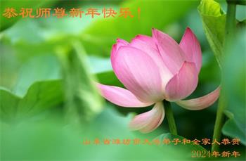 山东省潍坊市大法弟子和全家人恭祝师尊新年快乐!