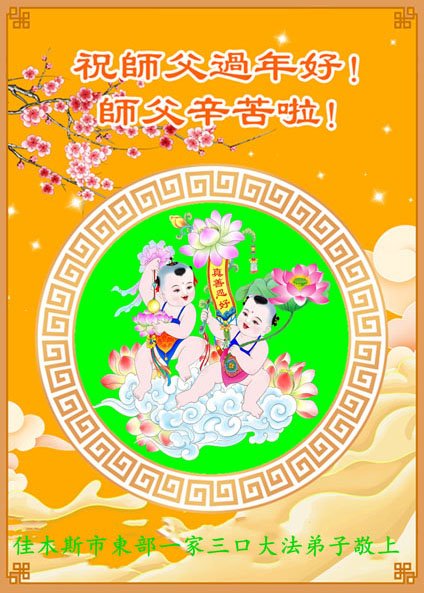 黑龙江省佳木斯市东部一家三口大法弟子恭祝师父过年好!