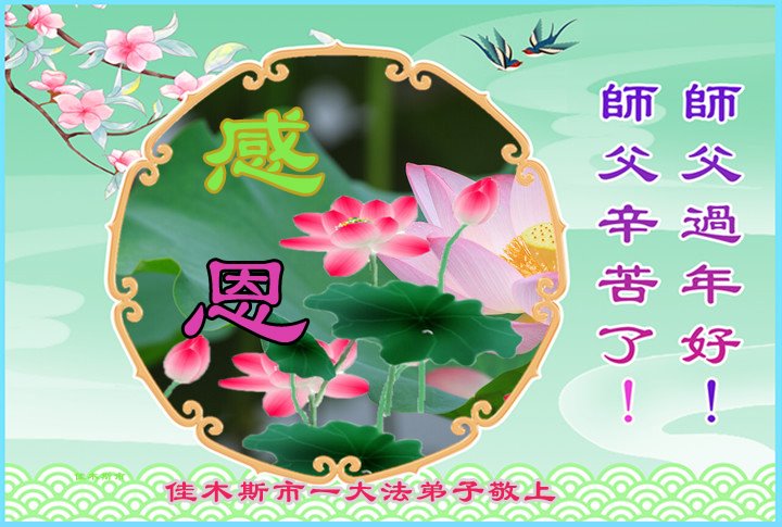 在新的一年里,我们会更加努力学法,学好法,精進实修,让师父多一份欣慰,少一份操劳。 黑龙江省佳木斯市一大法弟子恭祝师父过年好!