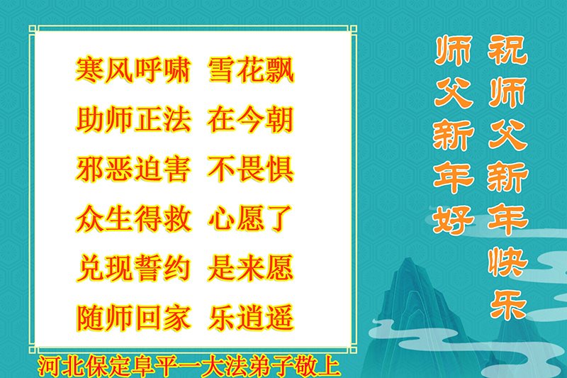 在新的一年里,我要听师尊的话,多救人,实修自己,让师尊多一些欣慰。 河北省保定市定州市大法弟子恭祝师父新年快乐!
