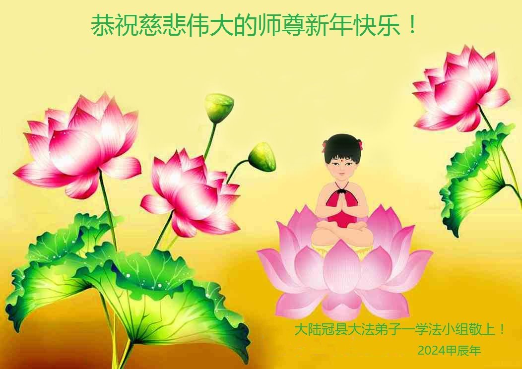 恭祝师父新年快乐! 山东龙口全家大法弟子敬上 二零二四年一月二十四日 山东省聊城市茌平区一学法小组大法弟子恭祝慈悲伟大的师父新年好!