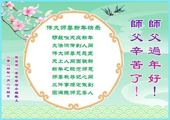 【明慧网二零二四年二月九日】 山东省烟台市龙口市全家大法弟子恭祝师父新年快乐!