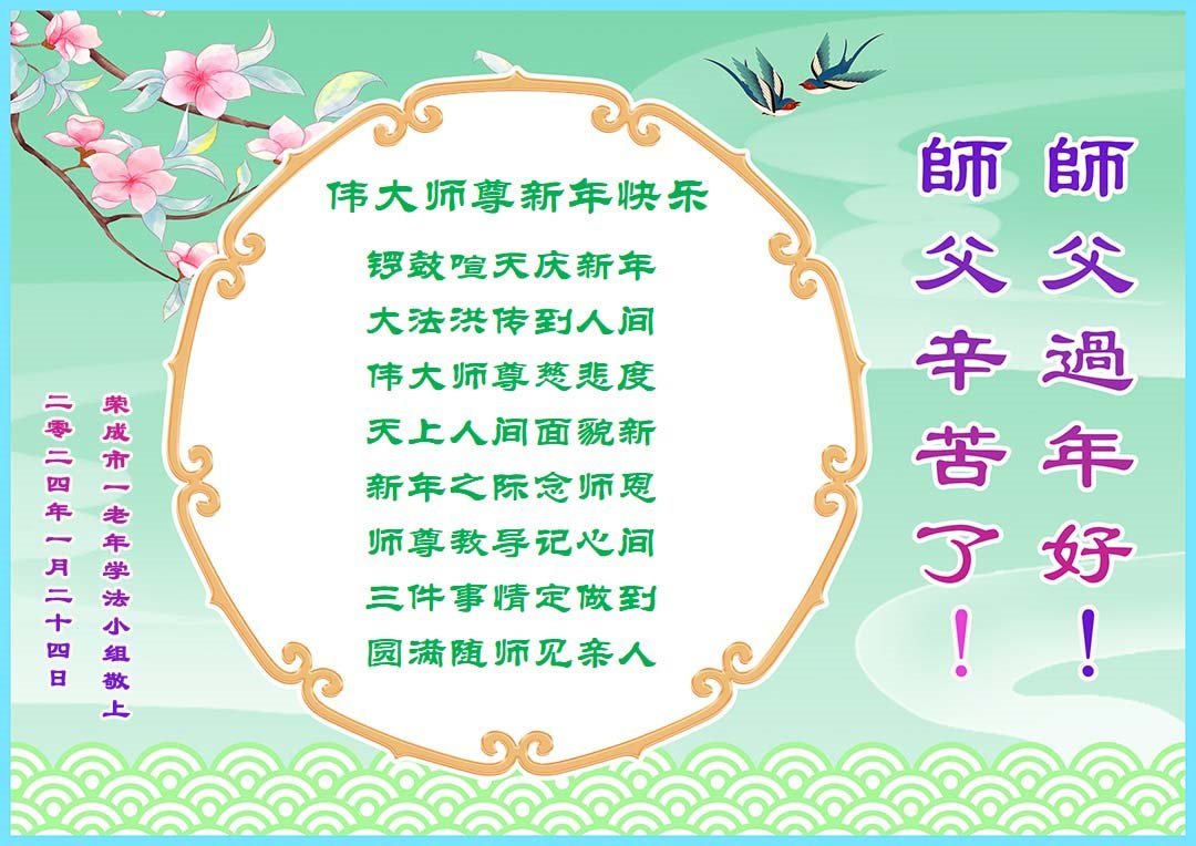 恭贺伟大师尊新年快乐! 山东省荣成市一老年学法小组大法弟子敬上 二零二四年一月二十四日 山东烟台开发区全体大法弟子恭祝师尊新年快乐!