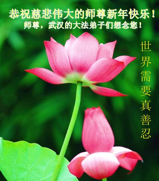 师尊辛苦了!全家感恩师尊!大法弟子使命是救人,告诉人们“真、善、忍”宇宙大法才是末世人们得救的希望,牢记:法轮大法好!真善忍好! 湖北武汉市光谷大法弟子一全家敬上 湖北武汉大法弟子恭祝师父新年好!