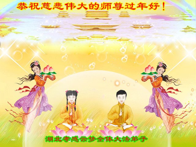湖北孝感应城市东马坊全体大法弟子恭祝慈悲伟大的师尊过年好!