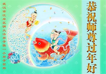 湖北省武汉市江岸区大法弟子携一小弟子恭祝师尊过年好!