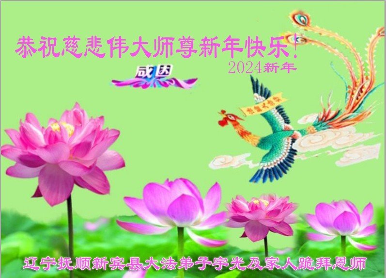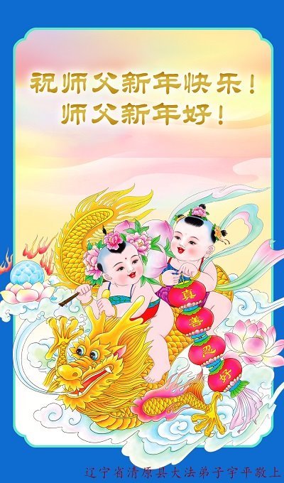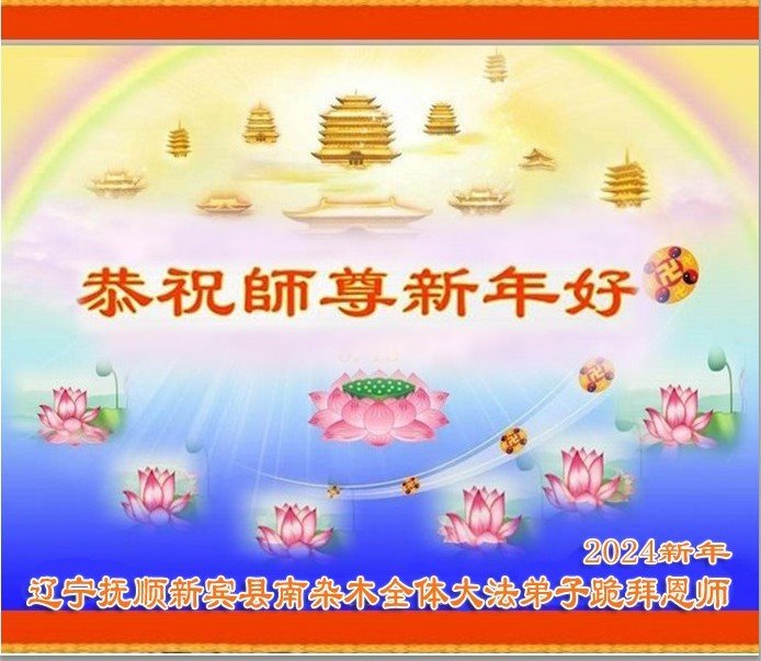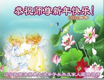 恭祝慈悲伟大的师尊新年好! 正法又一年,师尊辛苦了!弟子更精進,以报师洪恩! 叩拜师尊 辽宁省清原县一大法弟子敬上 辽宁省抚顺市清原县大法弟子恭祝师尊新年快乐!