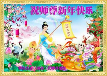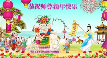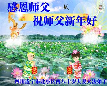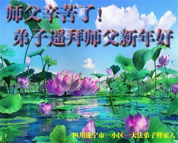 四川遂宁市一小区一大法弟子及家人遥拜师父新年好!