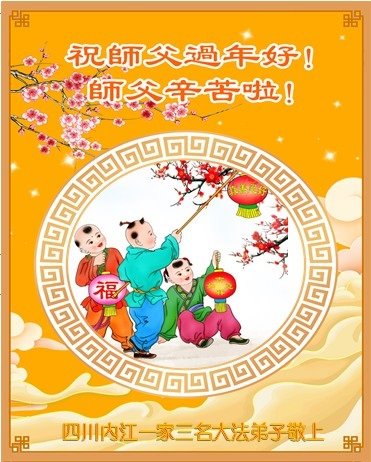 四川内江大法弟子全家三人恭祝师尊新年快乐!