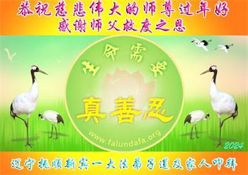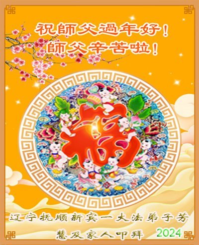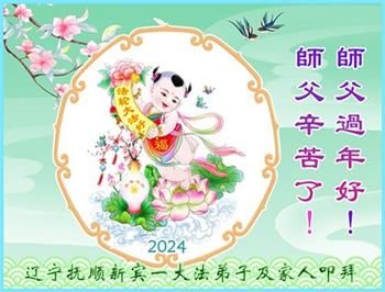 在中国新年来临之际,阜新市新邱区一学法小组大法弟子在此恭祝慈悲伟大的师尊过年好!弟子们唯有精進实修,修好自己,做好三件事,跟师父回家,以报师尊的佛恩浩荡! 合十 阜新市新邱区一学法小组大法弟子敬上 二零二四年一月二十三日 辽宁抚顺新宾一大法弟子及家人恭祝慈悲伟大的师尊新年好!