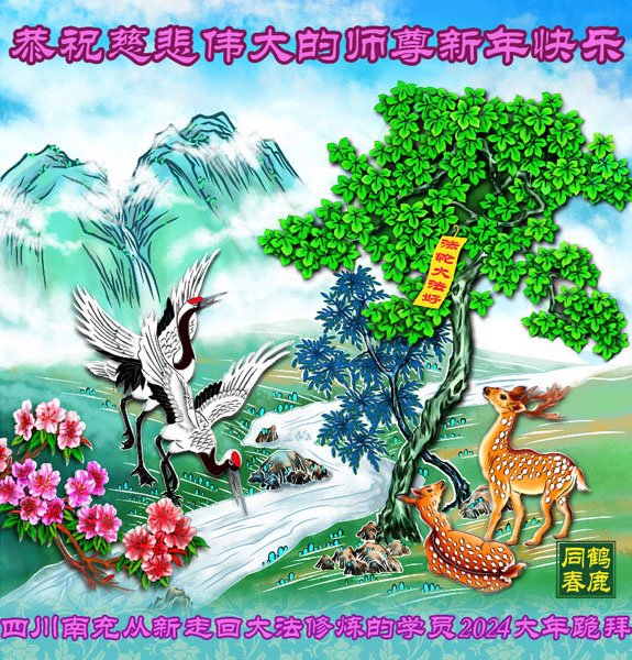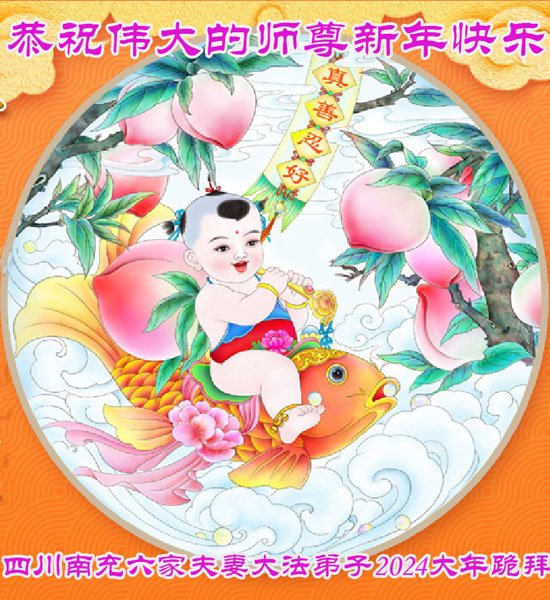 【明慧网二零二四年二月九日】 四川省自贡市一大法弟子携全体家人恭祝慈悲伟大的师尊过年好!