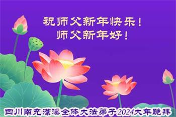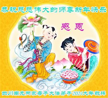 师父洪恩泽全宇,师父无量慈悲弟子无以言表。此生幸运当大法徒,助师正法,救众生,感恩师尊慈悲救度!我们要做好三件事,多救人。 广汉市六十五名大法弟子敬上 四川南充一个大法弟子携全家明真相亲人恭祝慈悲伟大的师尊新年快乐!