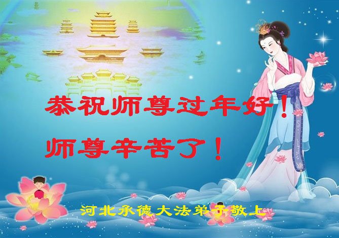 衷心感谢师尊的慈悲苦度!并致以崇高的敬意!叩拜师尊! 河北省沧州市东光县一大法弟子敬贺慈悲伟大的师父过年好!