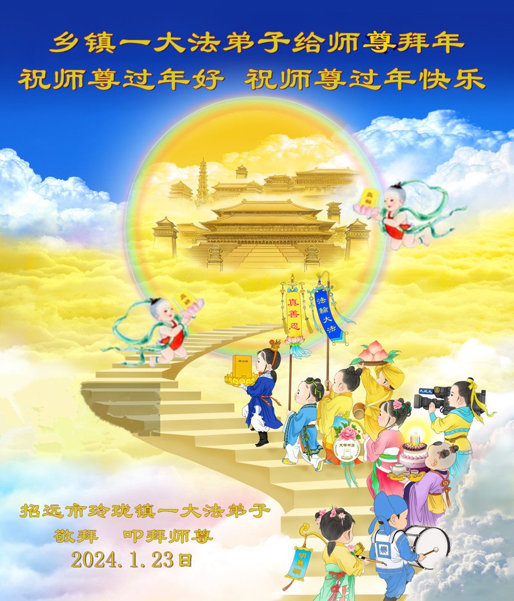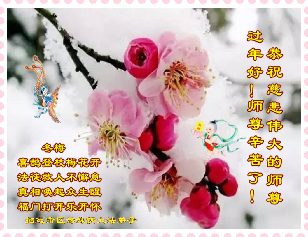 【明慧网二零二四年二月九日】 山东省烟台市招远市区姊妹俩大法弟子恭祝慈悲伟大的师尊过年好!师尊辛苦了!