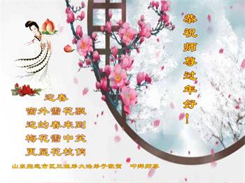 弟子一定要珍惜被延长来的生命,修好自己,不辱大法弟子神圣使命,把真相传递给世人,做好三件事。 山东省泰安市一大法弟子及家人敬贺师尊过年好!
