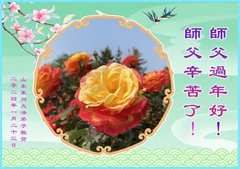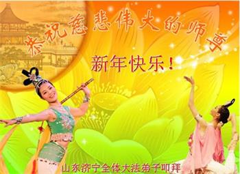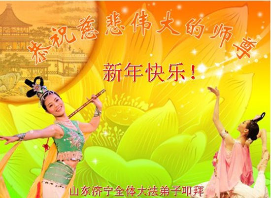 山东济宁全体大法弟子恭祝慈悲伟大的师尊新年快乐!弟子叩拜!