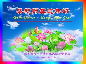 谢谢师父慈悲苦度!在新的一年里,弟子配合整体,多学法,时时向内找,多去执着,多救人。让师父多欣慰、少操劳。 黑龙江省佳木斯一学法小组大法弟子恭祝师尊过年好!