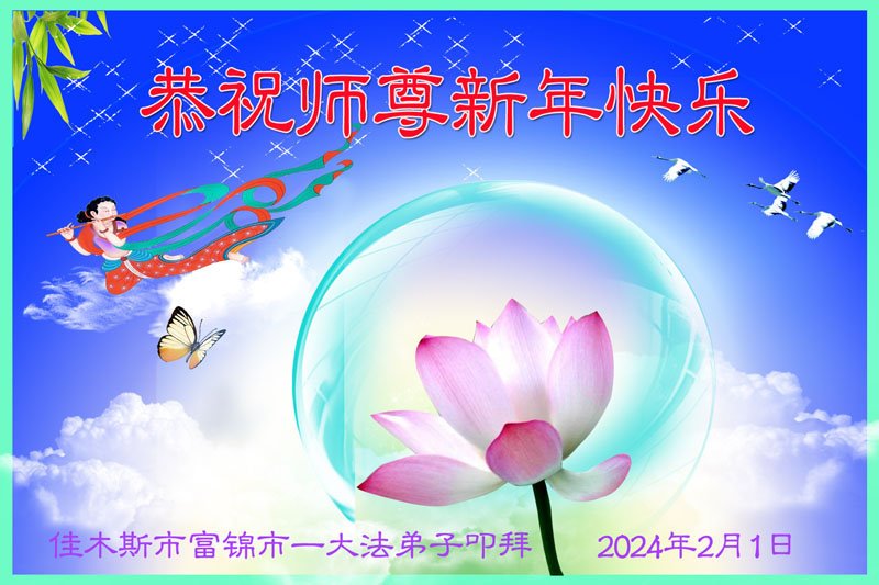 师父的圣恩弟子无以回报万一,唯有助师正法,救度众生,兑现誓约,圆满随师回归。 黑龙江省佳木斯市富锦市一大法弟子恭祝师父新年快乐!