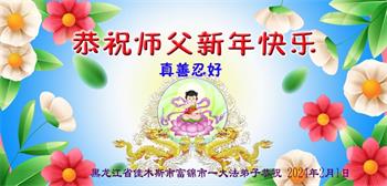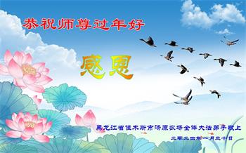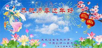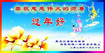 弟子代表全家恭祝师尊新年快乐!感谢师尊的慈悲救度! 弟子叩拜师尊! 黑龙江省佳木斯市汤原农场全体大法弟子恭祝师尊新年快乐!