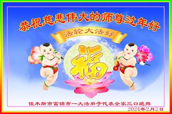 谢谢师父慈悲苦度!弟子一定走好师父安排的修炼路,完成使命,兑现誓约,多救人,圆满随师还。 黑龙江省佳木斯市富锦市一大法弟子代表全家三口恭祝慈悲伟大的师父过年好!