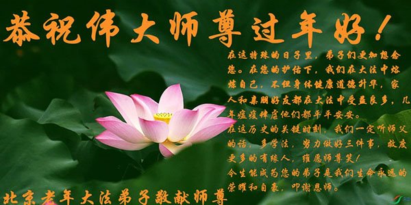 北京市海淀区一大法弟子给慈悲伟大的师尊拜年:恭祝师尊新年快乐!