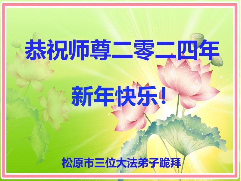 二零二四年新年到来之际,恭祝师父新年好! 谢谢师父慈悲救度,叩谢师父。 吉林省和龙市四名大法弟子敬上 二零二四年二月一日 吉林省四平市双辽市大法弟子恭祝慈悲伟大的师尊过年好!
