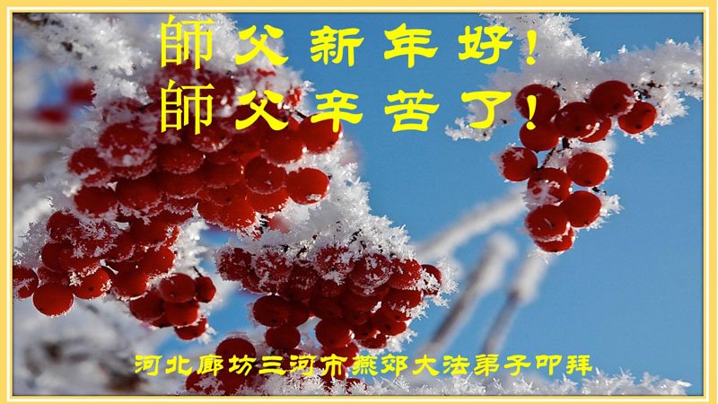 在新的一年里,我们会一如既往的按照师尊的教诲,做好三件事,修好自己,救度世人,决不辜负师尊的慈悲苦度。 河北省廊坊三河市燕郊大法弟子恭祝师父过年好!
