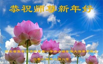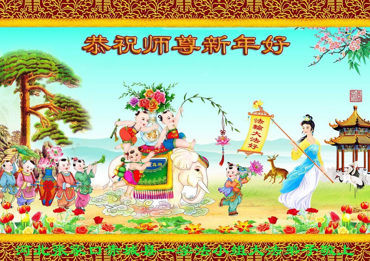 河北省张家口市下花园区大法弟子恭祝师尊过年好!师尊辛苦了。 河北省张家口市下花园区大法弟子敬上 河北省张家口市一学法小组大法弟子恭祝慈悲伟大师尊过年好!