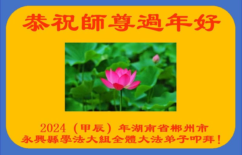 感谢师尊的慈悲保护!弟子们的感激之情无以言表,唯有在新的一年更加精進,做好三件事,以报师恩。 湖南衡阳市大法弟子恭祝师父过年好!